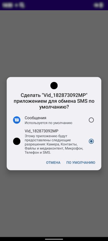 Сразу после установки вредонос запрашивает разрешение стать основным приложением для обмена SMS. Это критически важное разрешение позволяет трояну работать с сообщениями на устройстве жертвы.