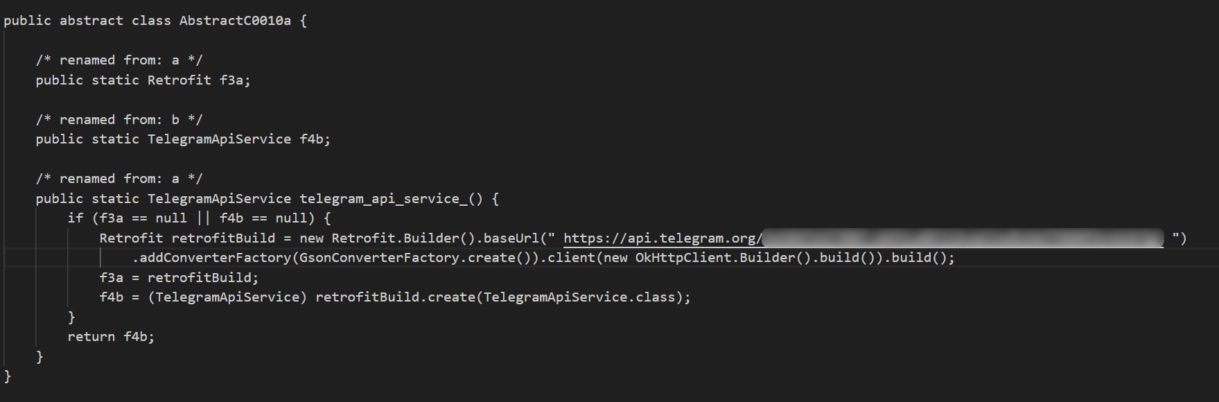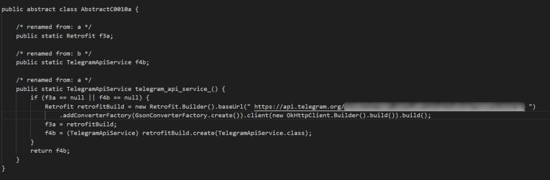 Для управления зараженными устройствами злоумышленники используют Telegram-бота. Вредонос отправляет собранную информацию через Telegram Bot API.