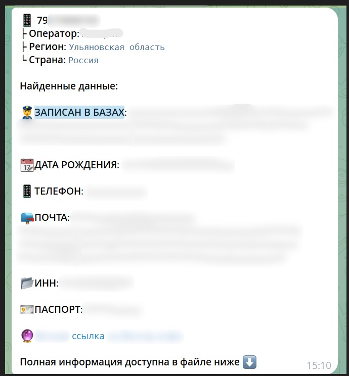 При выгрузке архива SMS бот проводит краткий контекстный анализ, оценивая примерный баланс счетов жертвы, наличие кредитов и паролей в сообщениях. После этого злоумышленники собирают информацию о жертве через специализированные сервисы, проверяя открытые данные и утечки информации. Чаще всего собранных данных оказывается достаточно для незаконных финансовых операций — входа в личные кабинеты банков, микрофинансовых организаций, получения кредитов и переводов средств.