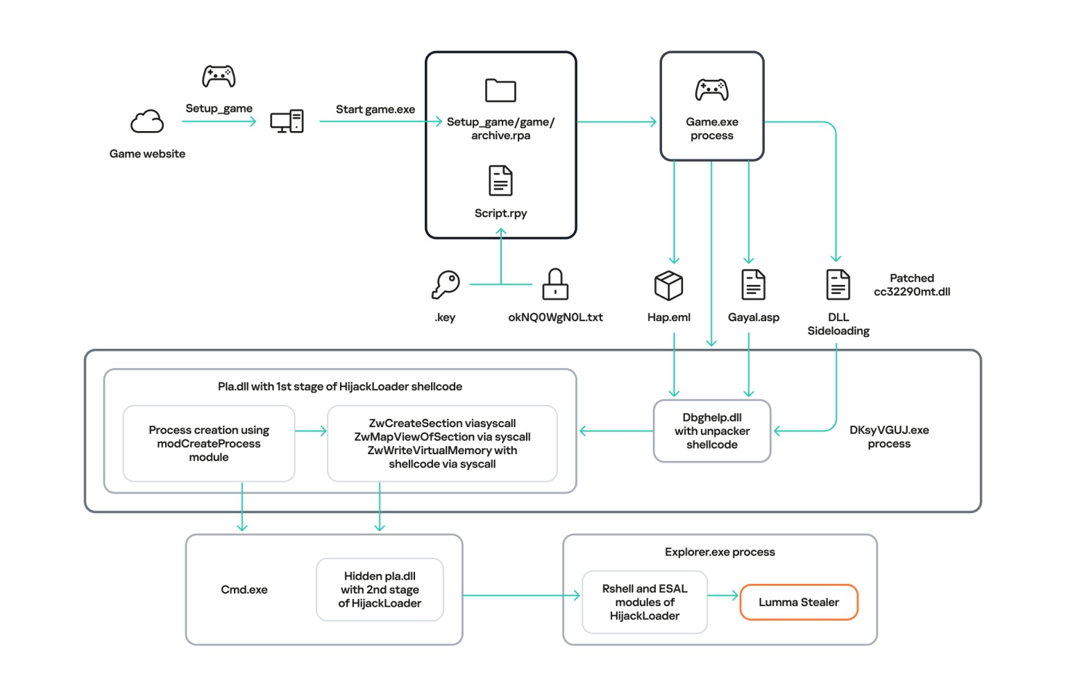 Недавно исследователи из компании Howler Cell обнаружили масштабную кампанию по распространению пиратских игр с неизвестным ранее загрузчиком малвари. Вредоноса назвали RenEngine — он встраивается в модифицированную версию лаунчера игр на движке Ren'Py. По данным «Лаборатории Касперского», первые образцы RenEngine появились еще в марте 2025 года. Тогда через RenEngine распространяли стилер Lumma, сейчас — ACR Stealer.