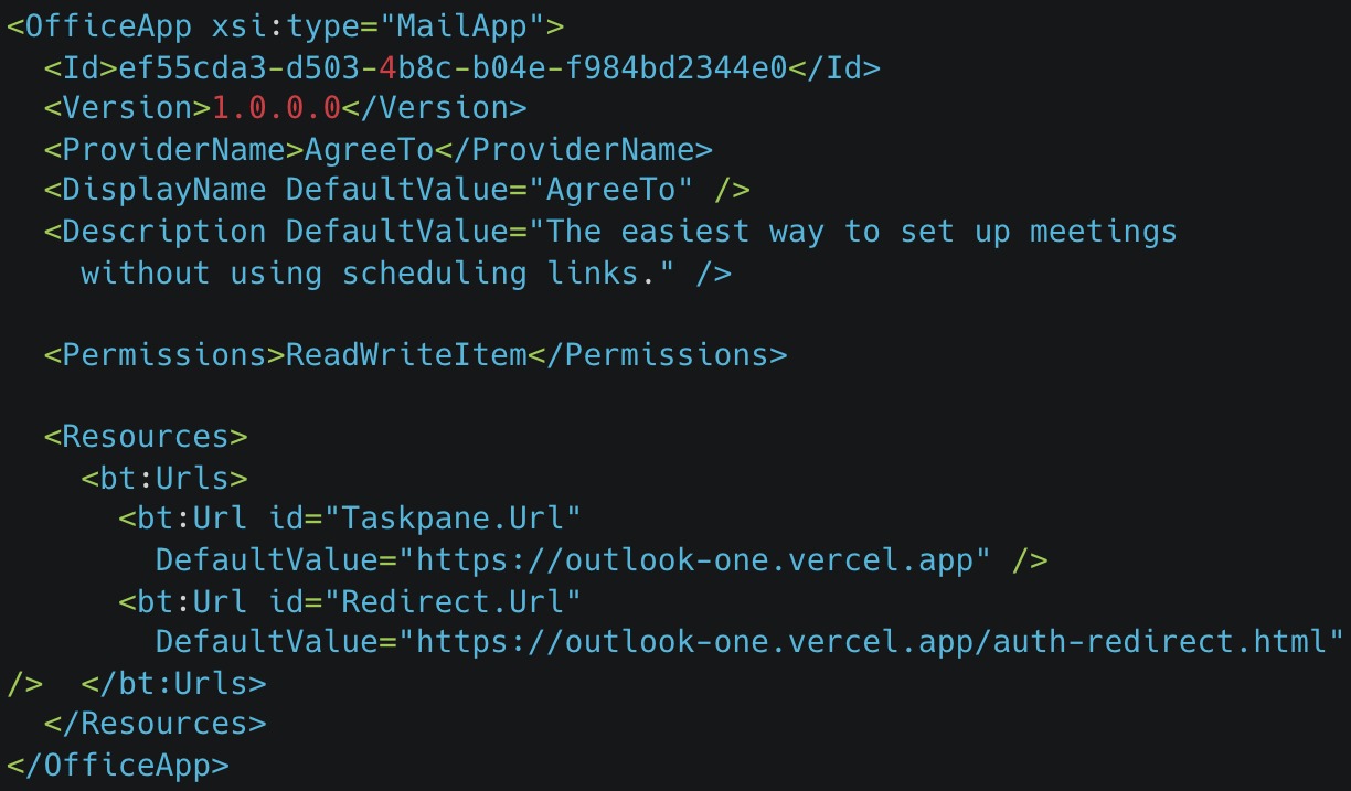 Аддоны для Office представляют собой URL-адреса, которые указывают на контент, загружаемый в продукты Microsoft с сервера разработчика. В случае AgreeTo разработчик использовал URL на хостинге Vercel (outlook-one.vercel[.]app), но впоследствии забросил проект, хотя у аддона к тому моменту уже сформировалась немалая пользовательская база.
