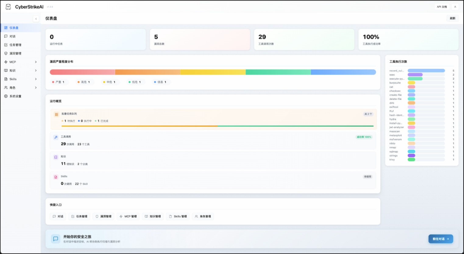 ИИ-движок CyberStrikeAI для принятия решений совместим с такими моделями, как GPT, Claude и DeepSeek. Также опенсорсная платформа предлагает защищенный паролем веб-интерфейс с журналированием действий и хранилищем на базе SQLite, а также дашборд для управления уязвимостями, оркестрации задач и визуализации цепочек атак.