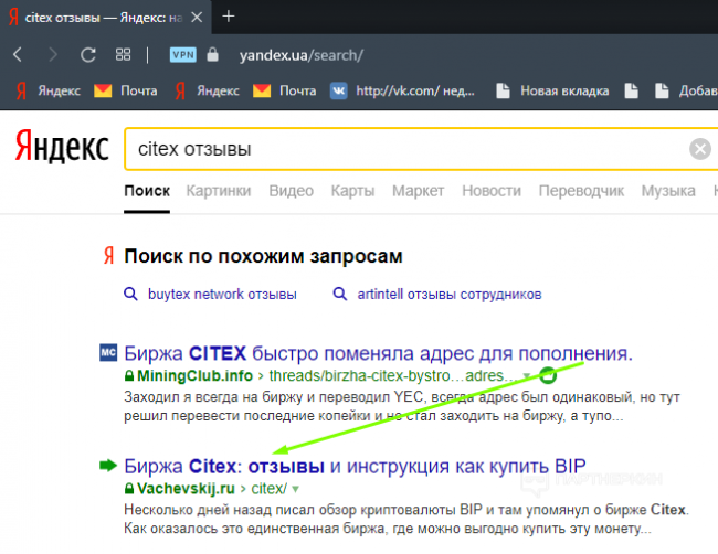 Например, я написал обзор биржи Citex, и она сразу вышла в ТОП даже без покупки ссылок: