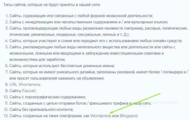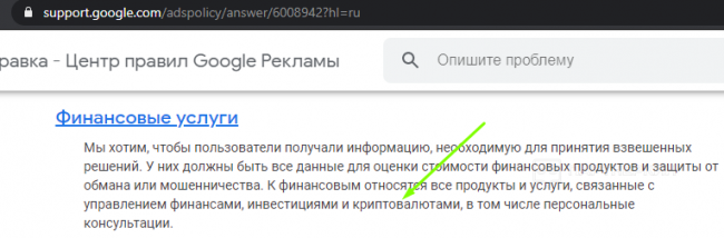 Если на любой другой блог можно практически сразу после его создания разместить контекстную рекламу Google AdSense, то с крипто блогом это не пройдет. В правилах четко пишет, что реклама AdSense на сайтах о криптовалютах и инвестициях запрещена: