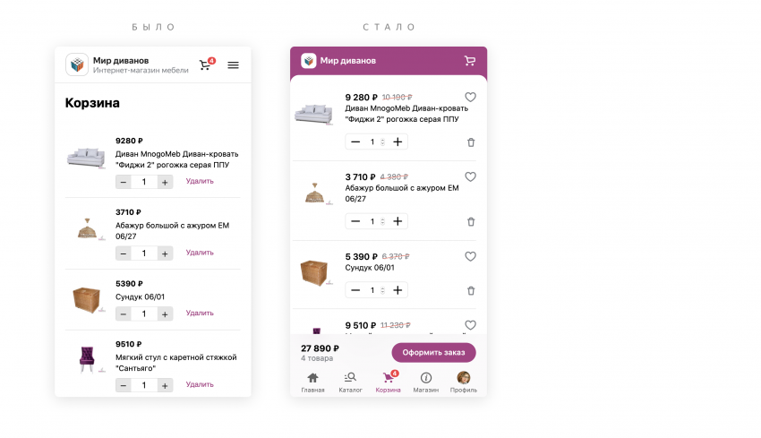 Чтобы изучать товары со смартфона было удобнее, карточки товаров в корзине так же увеличились.