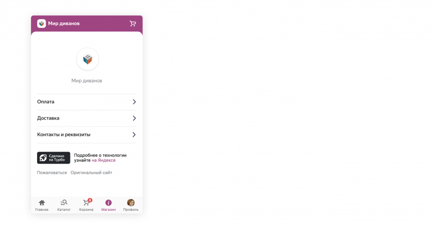 Владельцы Турбо-страниц с подключенной корзиной увидят обновление автоматически, ничего настраивать не нужно. Если же дизайн остался прежним, подключите корзину — она позволяет совершить заказ с ускоренной версии без перехода на основной сайт.