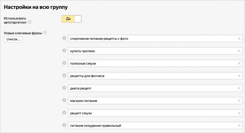 Осталось добавить ссылку на коллекцию и задать ключевые фразы.