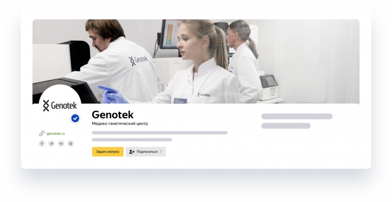 Опишите, как и для кого вы работаете. Загрузите логотип и брендированную обложку, добавьте ссылки на страницы компании в соцсетях.
