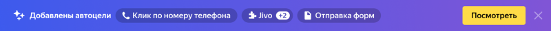 Если на вашем счётчике нет ни одной активной цели или вы зарегистрировали новый счётчик, значит, автоматическое создание целей уже подключено — скоро вы увидите уведомление о том, что на счётчике появились автоцели Jivo: