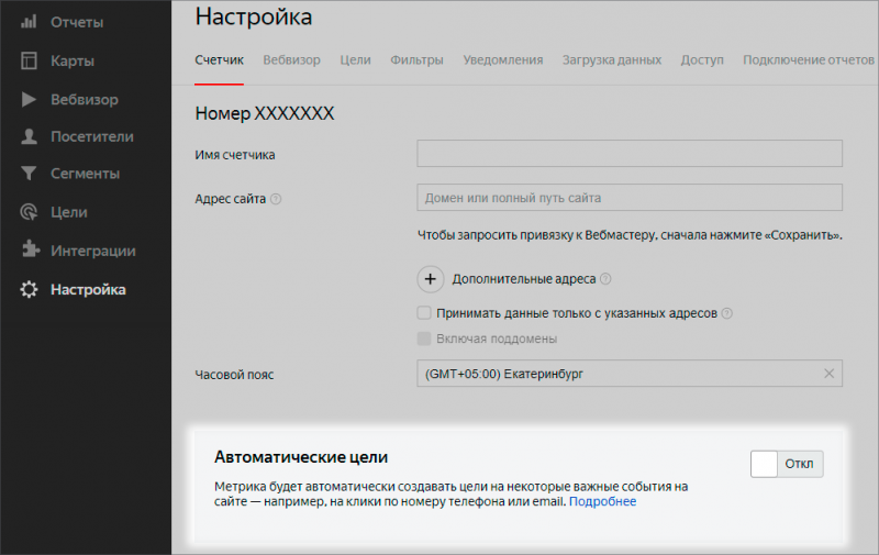 В остальных случаях нужно включить опцию Автоматические цели в настройках счётчика: