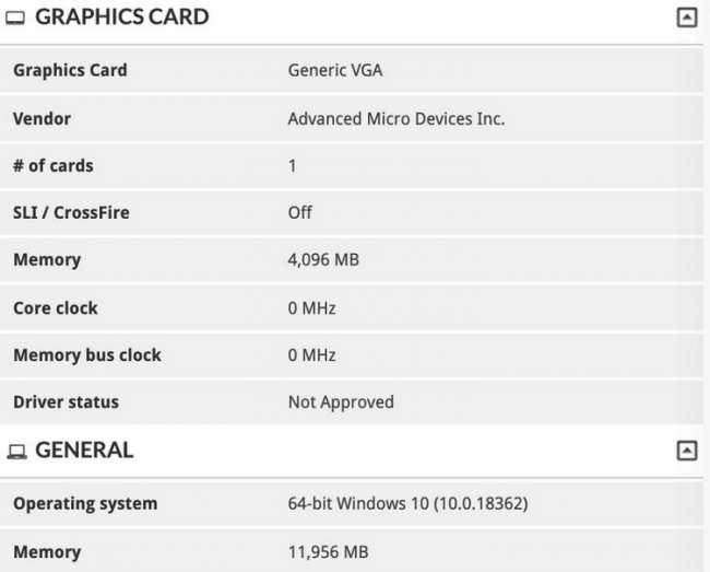 На то, что данный чип предназначается для консоли, указывает память системы, в которой он тестировался. Здесь используется 16 Гбайт памяти GDDR неизвестной версии (скорее всего GDDR6), из которых 4 Гбайт исполняют роль оперативной памяти системы, а оставшиеся 12 Гбайт являются видеопамятью. К сожалению, подробностей о графическом процессоре бенчмарк не предоставляет, но, судя по всему, тут весьма мощный GPU.