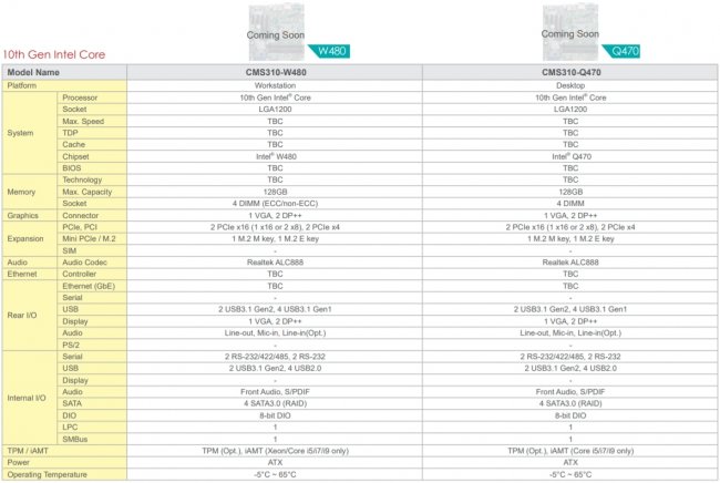 DFI указывает, что материнские платы CMS310-W480 и CMS310-Q470 будут доступны когда-то «скоро». По последним данным, анонс процессоров Comet Lake-S состоится в марте, и тогда же, соответственно, выйдут и платформы для них.