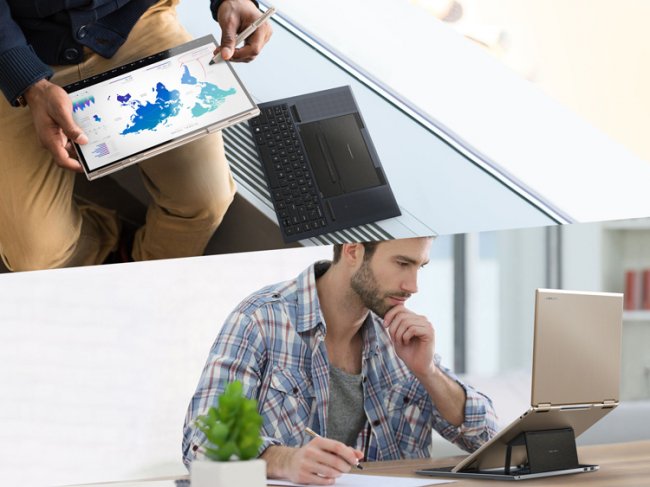 Крышка вращается на 360 градусов, благодаря чему можно реализовывать различные режимы работы, такие как планшетный и презентационный.