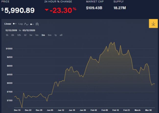 Всемирная организация здравоохранения впервые с момента вспышки коронавируса увидела в ней признаки пандемии, соответствующее заявление только усугубило падение фондовых индексов, которое наблюдалось после снижения цен на нефть в последние дни. Курс биткоина за последние сутки снизился на 23 %, что только подтверждает его статус спекулятивного актива. За последние пять дней биткоин потерял более 30 % своей стоимости, а дневное снижение курса было самым большим за пять лет.