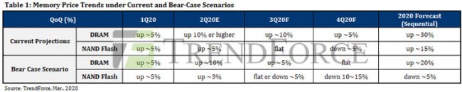 Пандемия серьезно затруднит экономическую и социальную деятельность во всех странах и снизит покупательскую способность потребителей. С другой стороны, снижение спроса на продукцию уменьшит потребность в закупках памяти. Тем не менее, в первом и втором кварталах 2020 года средняя цена продажи памяти DRAM и NAND продолжит рост несмотря ни на что. Этому они обязаны низкому уровню складских запасов памяти у производителей. Более того, если рост средней цены продажи памяти продолжится, это будет стимулом ещё больше закупать пока ещё имеющуюся на складах память.