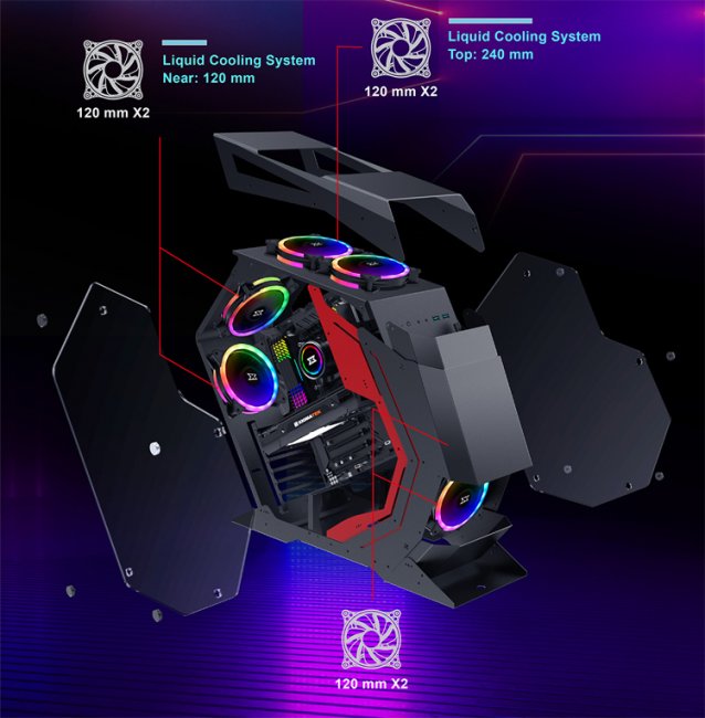 Компания Xigmatek анонсировала компьютерный корпус Perseus, предназначенный для формирования игровой настольной системы с агрессивным обликом. Устройство относится к полуоткрытому типу. Левая и правая панели изготовлены из закалённого стекла, через которое отлично просматривается внутреннее убранство. Основные комплектующие монтируются под наклоном. Возможна установка материнских плат типоразмера E-ATX, ATX, Micro-ATX и Mini-ITX. Длина дискретных графических ускорителей может достигать 400 мм. Для карт расширения доступны семь слотов. Компьютер может быть оборудован тремя накопителями в форм-факторе 3,5 дюйма или одним накопителем формата 3,5 дюйма и одним устройством стандарта 2,5 дюйма. Новинка позволяет задействовать до шести 120-мм вентиляторов. Возможно применение жидкостного охлаждения с радиаторами формата 240 мм и 120 мм. Ограничение по высоте процессорного кулера — 170 мм. На фронтальную панель выведены гнёзда для наушников и микрофона, а также два порта USB 3.0. Габариты составляют 610 ? 540 ? 230 мм. Информации об ориентировочной цене корпуса Xigmatek Perseus на данный момент, к сожалению, нет.