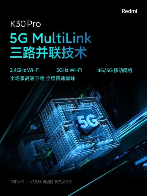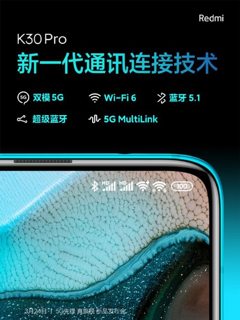 Бренд Redmi, созданный компанией Xiaomi, представил серию тизер-изображений, повествующих о коммуникационных возможностях будущего флагманского смартфона K30 Pro. Сообщается, что аппарат получит поддержку беспроводной связи Bluetooth 5.1. При этом будет реализована некая технология Super Bluetooth, которая обеспечит радиус действия до 400 метров. Подробности об этой системе, по всей видимости, будут раскрыты во время официального анонса. В оснащение войдёт контроллер Wi-Fi 6, или 802.11ax. Технология 5G MultiLink позволит смартфону одновременно поддерживать подключения в сетях Wi-Fi 2,4 ГГц и Wi-Fi 5 ГГц, а также в мобильной сети 4G или 5G. Известно, что в основу смартфона ляжет процессор Snapdragon 865, содержащий восемь вычислительных ядер Kryo 585 с тактовой частотой до 2,84 ГГц и графический ускоритель Adreno 650. Аппарат будет наделён четверной тыльной камерой с 64-мегапиксельным основным сенсором. Ранее говорилось о наличии аккумулятора ёмкостью 4700 мА·ч с поддержкой быстрой 33-ваттной подзарядки. Анонс Redmi K30 Pro состоится уже 24 марта. Цена новинки может оказаться на уровне $450–500.