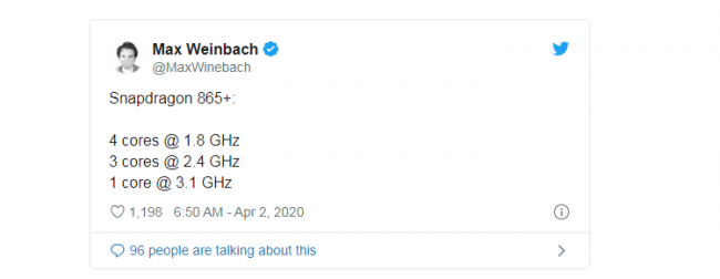 Согласно его сообщению, новый процессор Qualcomm будет построен по принципу 1+3+4. Основное ядро будет работать на частоте 3,1 ГГц, три ядра получат частоту 2,4 ГГц, а четыре энергоэффективных ядра будут работать с частотой 1,8 ГГц.