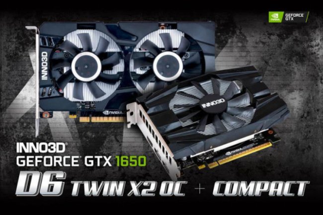 INNO3D представила два видеоадаптера GeForce GTX 1650 с новым типом памяти. Полноразмерная INNO3D GeForce GTX 1650 D6 TWIN X2 OC получила два мощных вентилятора. Базовая частота стандартна для видеокарт серии GeForce GTX 1650 и составляет 1410 МГц. В разгоне частота GPU достигает 1620 МГц.