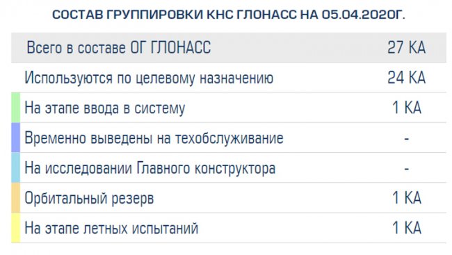 Сейчас в состав системы ГЛОНАСС входят 27 космических аппаратов. Из них 24 используются по целевому назначению. По одному находятся на этапе ввода в систему, на этапе лётных испытаний и в орбитальном резерве.