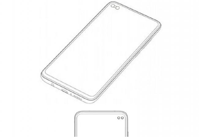 В документации приводятся несколько вариантов исполнения аппарата. В одном из них двойной селфи-модуль располагается по центру в верхней области дисплея. Ещё один возможный подход — размещение в правом верхнем углу.