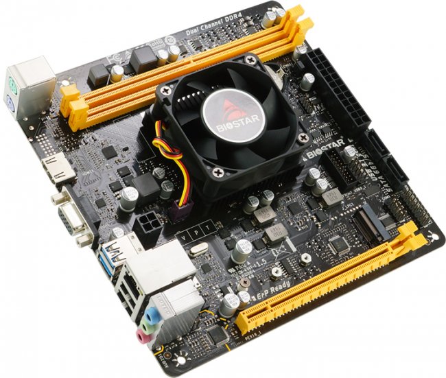 Для модулей оперативной памяти DDR4-2133/2400 суммарным объёмом до 32 Гбайт доступны два слота. Возможно подключение двух накопителей с интерфейсом SATA 3.0 и одного твердотельного модуля М.2.