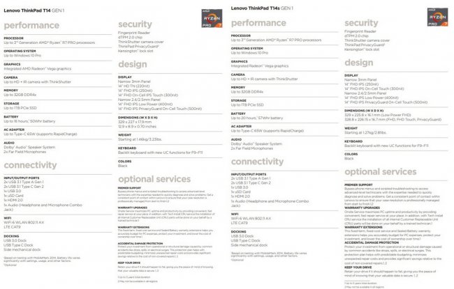 Журналисты смогли найти на просторах Сети обновленную техническую информацию для моделей T14 и T14s. Во-первых, выяснилось, что в обновленных данных не значатся порты Thunderbolt 3 для этих моделей. Помимо этого, у модели T14 отсутствует сетевой порт RJ45, который также присутствовал в изначально представленных в феврале технических данных.