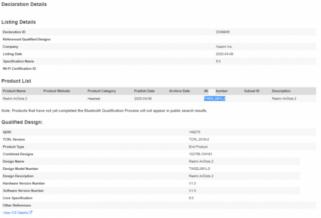 AirDots 2 не единственный аудиопродукт Redmi, который находится на одной из финальных стадий разработки. Вчера Bluetooth SIG также опубликовала информацию о сертификации беспроводных наушников Redmi SonicBass c номером модели INLYEJ02LS. Про них и вовсе пока что известно лишь то, что они будут подключаться по Bluetooth 5.0.