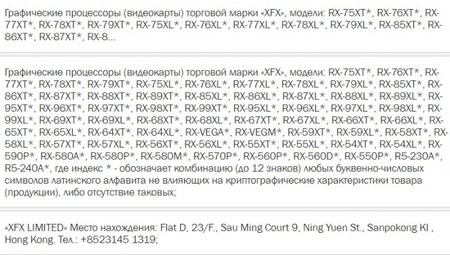 Самыми старшими на данный момент потребительскими видеокартами AMD являются модели Radeon RX 5000-й серии. Об их преемниках компания AMD пока что не распространяется, ограничиваясь лишь малыми порциями информации о следующем поколении графических процессоров. Однако это не помешало XFX зарегистрировать названия будущих видеокарт в базе Евразийской экономической комиссии (ЕЭК). В свежей нотификации от 10 апреля упоминается множество видеокарт серий Radeon RX 6000, RX 7000, RX 8000 и даже RX 9000. Все они упоминаются в зашифрованном виде, но понять, о каких моделях идёт речь, не составит труда. Например, под кодовым названием RX99XT* явно подразумевается Radeon RX 9900 XT. Таким образом у XFX формируются артикулы видеокарт. Интересно, что помимо моделей с суффиксом «XT» в названии, также упоминаются и модели с суффиксом «XL». По всей видимости, под этим кодовым названием проходят обычные модели, без буквенного обозначения. Например, в списке фигурируют видеокарты RX57*XL и RX57*XT, которые на самом деле являются моделями Radeon RX 5700 и RX 5700 XT соответственно. Также XFX упоминает несколько видеокарт с суффиксами «A» «M» и «P», но что означают эти сокращения, понять сложно. Похоже, компания AMD намерена ещё довольно долго использовать схему наименований, предложенную в 5000-й серии видеокарт Radeon RX. В среднем сегменте будут предлагаться видеокарты Radeon RX x500 и RX x600, чуть выше будут стоять модели Radeon RX x700, а самыми старшими станут ускорители Radeon RX x800 и RX x900. Правда, нельзя исключать и возможность того, что всё это лишь инициатива самой XFX, и реальные планы у компании AMD другие.