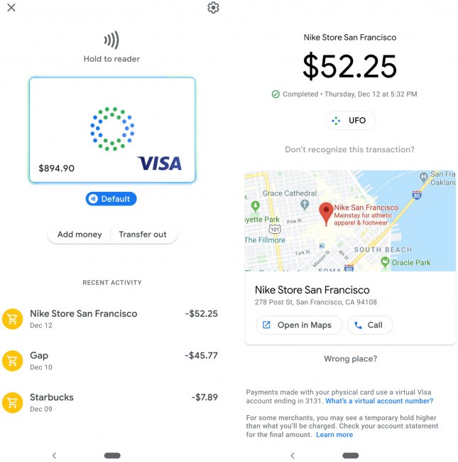 Работа «умной» дебетовой карты Google описывается как обычный онлайн-банкинг, который привычен большинству российских пользователей: детальные выписки по платежам, переводы внутри приложения, возможность забраковать свою карту в случае утери или подозрения на активность мошенников и так далее.