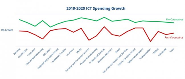 Аналитические компании продолжают понижать прогнозы по мировому рынку информационных технологий (IT). Причина — продолжающееся распространение коронавируса, который сильно ударил по самым разным отраслям. Свежие статистические данные говорят о том, что число заболевших по всему миру приближается к 2,6 млн. Зарегистрировано уже почти 180 тыс. смертельных случаев. В России коронавирус выявлен у 58 тыс. человек; более 500 заболевших ушли из жизни. Компания IDC прогнозирует, что в нынешнем году негативный эффект в связи с пандемией ощутят практически все сегменты глобального рынка информационных технологий. Некоторые отрасли пострадают в большей степени, другие — в меньшей. Наиболее серьёзное сокращение затрат ожидается в сферах пассажирских перевозок, персональных и потребительских сервисов. Здесь падение выручки составит в годовом исчислении 5 % и более. В области IT-производств прогнозируется 3-процентное падение. С учётом того, что затраты в данной сфере составляют около $400 млрд, потери окажутся весьма значительными. В то же время с учётом перевода сотрудников компаний на удалённую работу и введения режима самоизоляции граждан некоторые сегменты IT-рынка покажут рост. Это касается телекоммуникаций, профессиональных сервисов, государственных электронных услуг. В целом, мировой IT-рынок в 2020 году покажет спад на 2,7 % вместо ранее ожидавшегося роста на уровне 5,1 %.