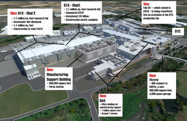 Ещё одним перспективным проектом Intel является третья стадия расширения Fab D1X, которая традиционно применяется для начала освоения наиболее продвинутых технологических процессов и производства новейших CPU (отчасти потому, что доработки новых техпроцессов ведутся в находящейся неподалёку Fab D1D).