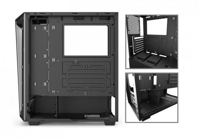 Корпус выполнен в чёрном цвете и поддерживает установку материнских плат форм-факторов ATX, Micro-ATX и Mini-ITX. Фронтальная панель позволяет установить радиатор системы жидкостного охлаждения длиной до 360 мм и/или три вентилятора размером 120 мм. Сверху имеется место под установку радиатора длиной до 240 мм и/или двух вентиляторов 120 мм. Сзади — одно посадочное место для 120-мм вентилятора. В верхней части корпуса предусмотрен пылевой фильтр.