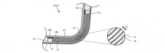 Патент с порядковым номером 10,642,318, называющийся «Планарная петля в сборе», описывает гибкое устройство, весьма похожее на MacBook Pro. В нём говорится, что ноутбук получит вид цельного устройства и вместо привычного шарнира будет иметь гибкую часть корпуса между клавиатурой и экраном. Суть изобретения состоит в том, что сгибаемая часть, имеющая «регулируемую структуру изгиба» должна быть сформирована из «стопки слоёв, способных переходить из несжатого состояния в сжатое». По большей части патент описывает способы, с помощью каких данная возможность может быть реализована на практике. Однако в нём практически не описаны преимущества изгибаемого механизма перед привычным шарниром.