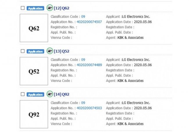 LG направила в Корейское ведомство интеллектуальной собственности (KIPRIS) заявки на регистрацию торговых марок Q31, Q32, Q33, Q51, Q51S, Q52, Q53, Q61, Q62, Q63, Q91, Q92 и Q93. Все их планируется использовать для сотовых аппаратов.