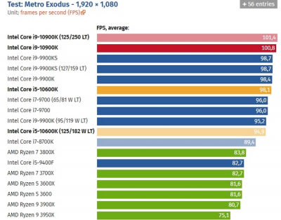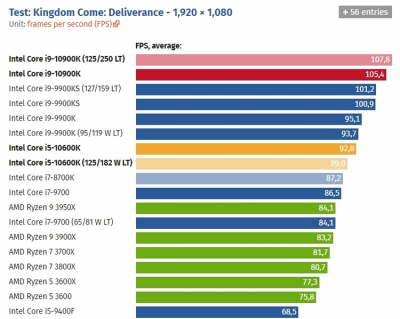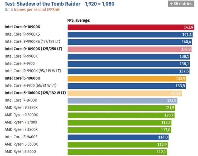 Игровые тесты Intel Core i9-10900К в разрешении Full HD