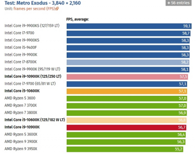 Игровые тесты Intel Core i9-10900К в разрешении 4K