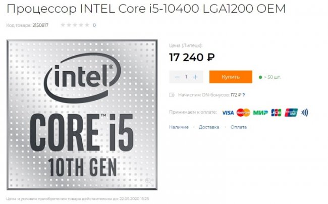 20 мая компания Intel начала официальные продажи представленных в конце прошлого месяца процессоров Intel Comet Lake-S. Первыми в магазины должны были поступить представители K-серии: Core i9-10900K, i7-10700K и i5-10600K. Однако в российской рознице ни одной из этих моделей пока нет. Но зато в нашей стране неожиданно стали доступны младшие Core i5-10400, которые поступят в продажу по всему миру только 27 мая (например, на Amazon и Newegg на них можно оформить лишь предзаказ).
