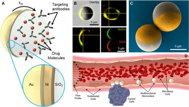 Исследователи из Института Макса Планка предложили роботизированные лейкоциты, способные двигаться и доставлять лекарства по кровеносным сосудам даже против потока крови. Разработчики утверждают, что они создали первые такого рода решения. Маленькие роботизированные сферы диаметром менее 8 мкм могут передвигаться в кровеносных сосудах в любом направлении со скоростью до 600 мкм/с, что соответствует перемещению каждой из них за одну секунду на 76 диаметров.