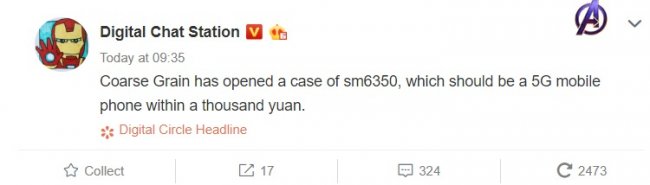 ом утечки является авторитетный китайский техноблог Digital Chat Station. Он сообщает, что стоимость устройства составит порядка $140, что сделает его самым доступным 5G-смартфоном на рынке. Исходя из достаточно скромной цены, можно предположить, что новый телефон получит не самый лучший ЖК-дисплей и довольно скромную камеру. Однако предполагается, что смартфон получит батарею ёмкостью свыше 4000 мА·ч с поддержкой быстрой зарядки.