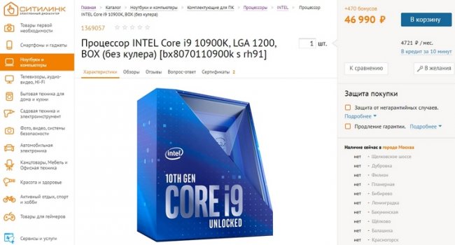 Флагманский 10-ядерный процессор Intel Core i9-10900K можно купить в Москве по цене от 43 990 рублей уже сейчас. Если же брать магазины с доставкой по России, то в «Ситилинке» за данный чип просят 46 990 рублей, а в «ОГО» — 44 990 рублей. Для сравнения, в Европе этот процессор продаётся по 589 евро, то есть около 45 тыс. рублей. А в США его на текущий момент найти проблематично.