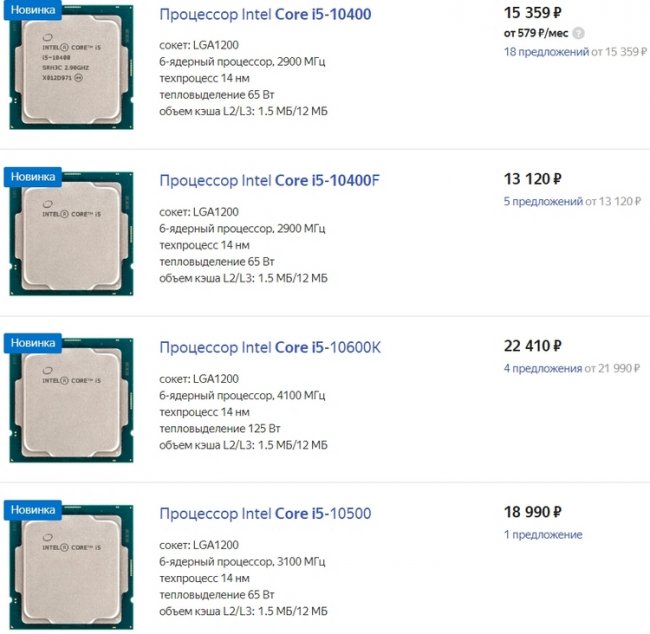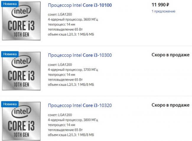 Поступили в продажу и новые Core i5, начальная стоимость которых на данный момент в зависимости от модели составляет от 13 120 до 21 990 рублей. А самым доступным представителем семейства Comet Lake-S на данный момент является Core i3-10100. Его стоимость составляет 11 990 рублей. Новые чипы семейств Pentium и Celeron пока на прилавках не появились.