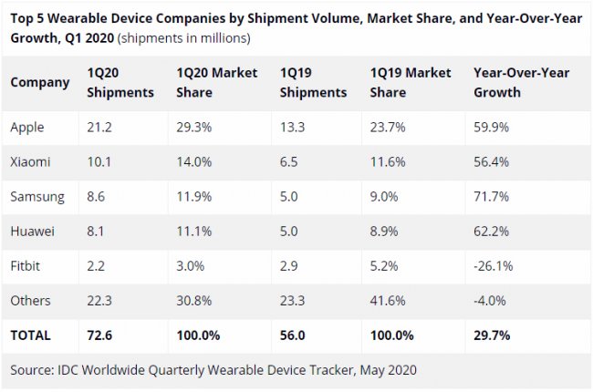 В период с января по март включительно по всему миру было реализовано 72,6 млн названных устройств. Это на 29,7 % больше по сравнению с результатом за первую четверть 2019 года, когда объём отрасли оценивался в 56,0 млн единиц.