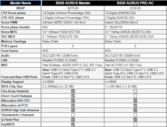 За новинки придётся выложить не так уж мало, если ориентироваться на документ с рекомендованными розничными ценами, который выложил один из сотрудников Gigabyte Technology на страницах Reddit. Перечень материнских плат марки Gigabyte охватывает ценовой диапазон от $94 за модель B550M DS3H до $279 за плату уровня B550 AORUS Master с богатым набором поддерживаемых интерфейсов и продвинутой системой охлаждения.