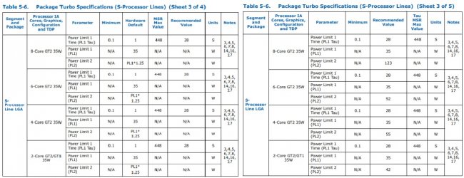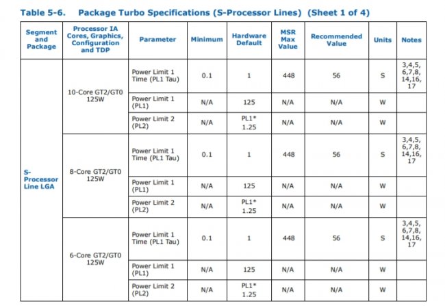 Теперь же на сайте Intel появилась новая версия того же технического документа с номерном 615211-005, в котором значения PL2 переправлены на более высокие значения.