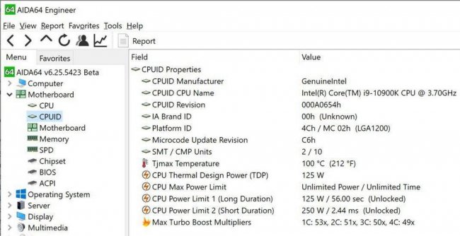 Именно пиковым значением PL2 компания Intel и стала манипулировать в документах на Comet Lake. В прежней технического документа под номером 615211-004 она указывала, что уровень PL2 можно определить, умножив PL1 на 1,25. То есть, например, для Core i9-10900K второй уровень энергопотребления должен был составлять 155 Вт.
