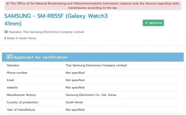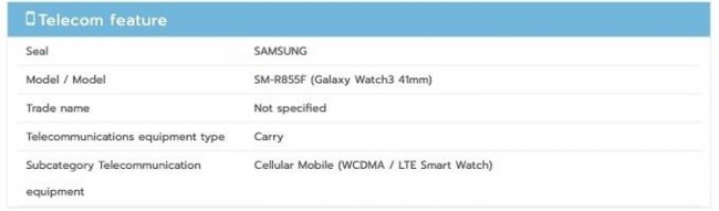 Ранее предполагалось, что новинка получит имя Galaxy Watch 2 или Galaxy Watch Active 3. Но данные NBTC указывают на то, что часы называются Galaxy Watch 3. Устройство имеет кодовое обозначение SM-R855F — это 41-миллиметровая версия с поддержкой 4G/LTE.