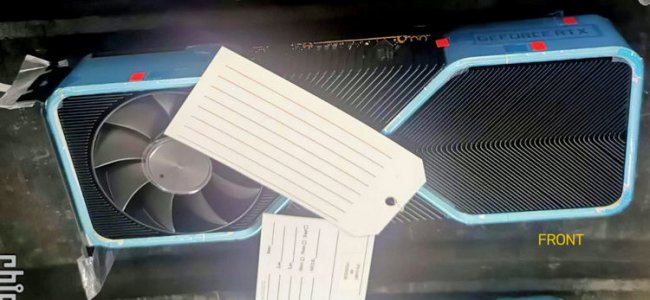 Разъёмов питания на привычных местах не видно, что может означать, что они перенесены в торец, как на видеокартах серии Quadro. Также рядом с монтажной планкой можно заметить нечто похожее на новую версию разъёма NVLink.