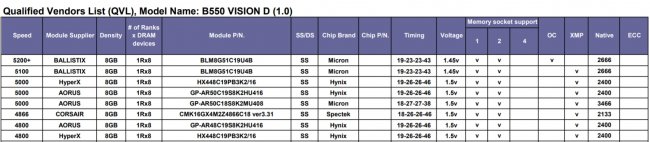 Стоит добавить, что компания Gigabyte даёт явное указание на подготовку серийных модулей оперативной памяти с тактовой частотой выше 5000 МГц. Так, в списке совместимых с материнской платой Gigabyte B550 Vision В модулей памяти упоминаются неанонсированные пока модули Crucial Ballistix с частотой 5100 МГц (BLM8G51C19U4B). Более того, отмечается, что эти 8-гигабайтные модули смогут покорить и частоты выше 5200 МГц. По всей видимости, их релиз состоится примерно в то же время, когда выйдут десктопные процессоры семейства Renoir.