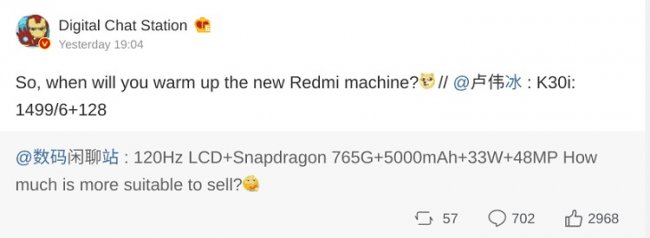 Xiaomi, как сообщается, планирует обновить серию Redmi. Недавняя утечка сообщает, что компания планирует запустить новый смартфон, который окажется не чем иным, как Redmi Note 9 5G. Напомним, что базовая версия устройства, которая сейчас доступна на рынке, ограничена поддержкой LTE. Информация сайта - «dima-gid.ru» Информацию о скором выпуске нового устройства опубликовал авторитетный инсайдер, скрывающийся под ником Digital Chat Station, информация от которого практически всегда подтверждается. Он опубликовал некоторые технические характеристики грядущего смартфона и предложил пользователям Weibo угадать стоимость устройства. По словам аналитика, смартфон будет оснащён 120-Гц ЖК-экраном. «Сердцем» устройства станет популярный среднебюджетный чипсет Qualcomm Snapdragon 765G. Информация сайта - «dima-gid.ru» Самым доступным 5G-устройством в актуальном модельном ряду производителя в данный момент является Redmi K30i, однако есть вероятность, что новая модификация Redmi Note 9 будет стоить ещё меньше. Это, вероятно, будет достигнуто благодаря тому, что, согласно утечке, смартфон будет оснащён относительно скромной 48-Мп камерой. Также известно, что ёмкость батареи смартфона составит 5000 мА·ч. Предполагается поддержка 33-Вт быстрой зарядки. Похоже, Xiaomi планирует выпустить самый доступный 5G-смартфон на рынке. Вероятно, в ближайшие дни в Сети появятся новые подробности о готовящемся смартфоне. :